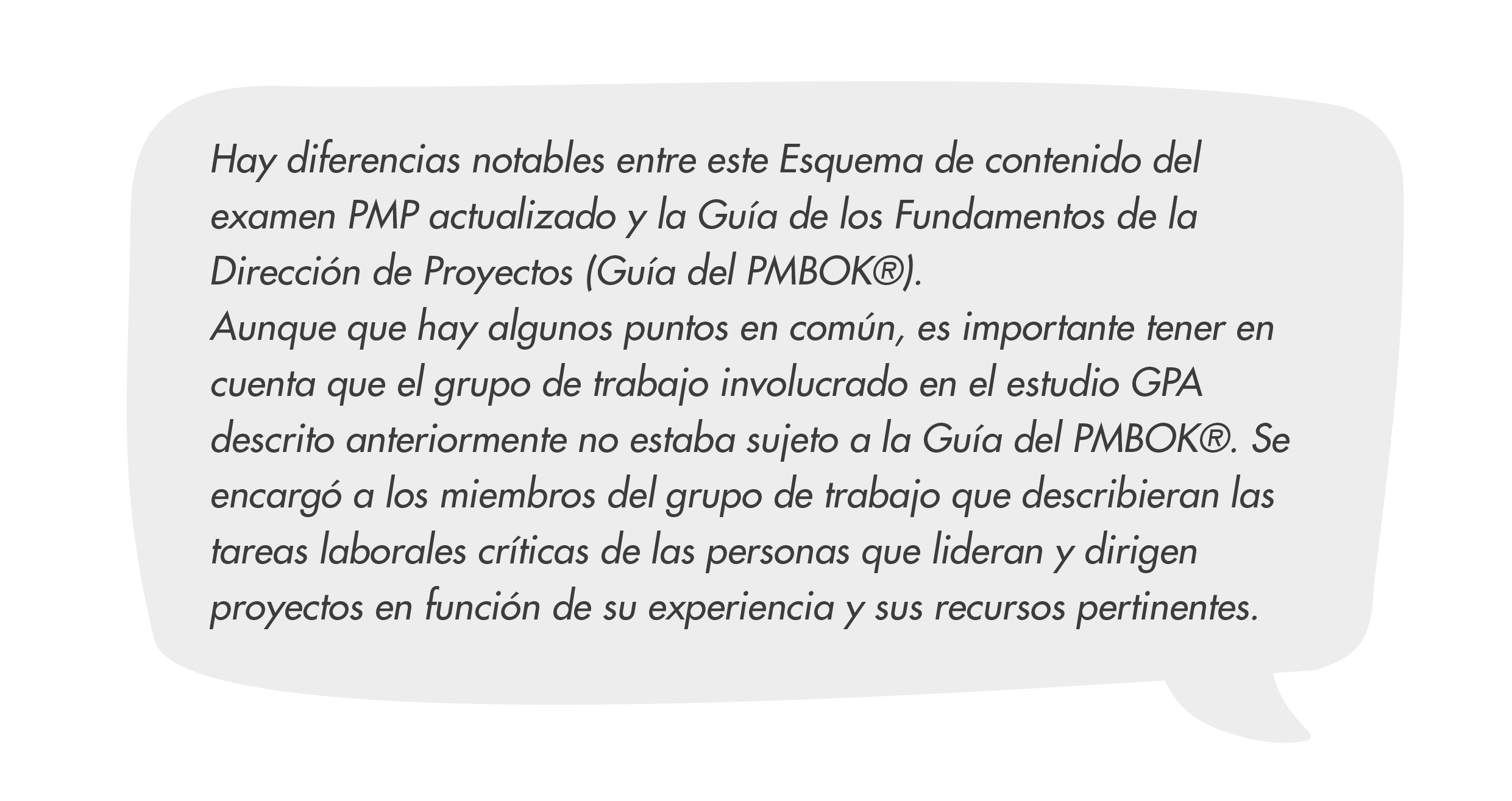 “*El examen se basa en el esquema de contenido del examen de certificación PMP (ECO), no en la (Guía PMBOK®) u otros libros de referencia».