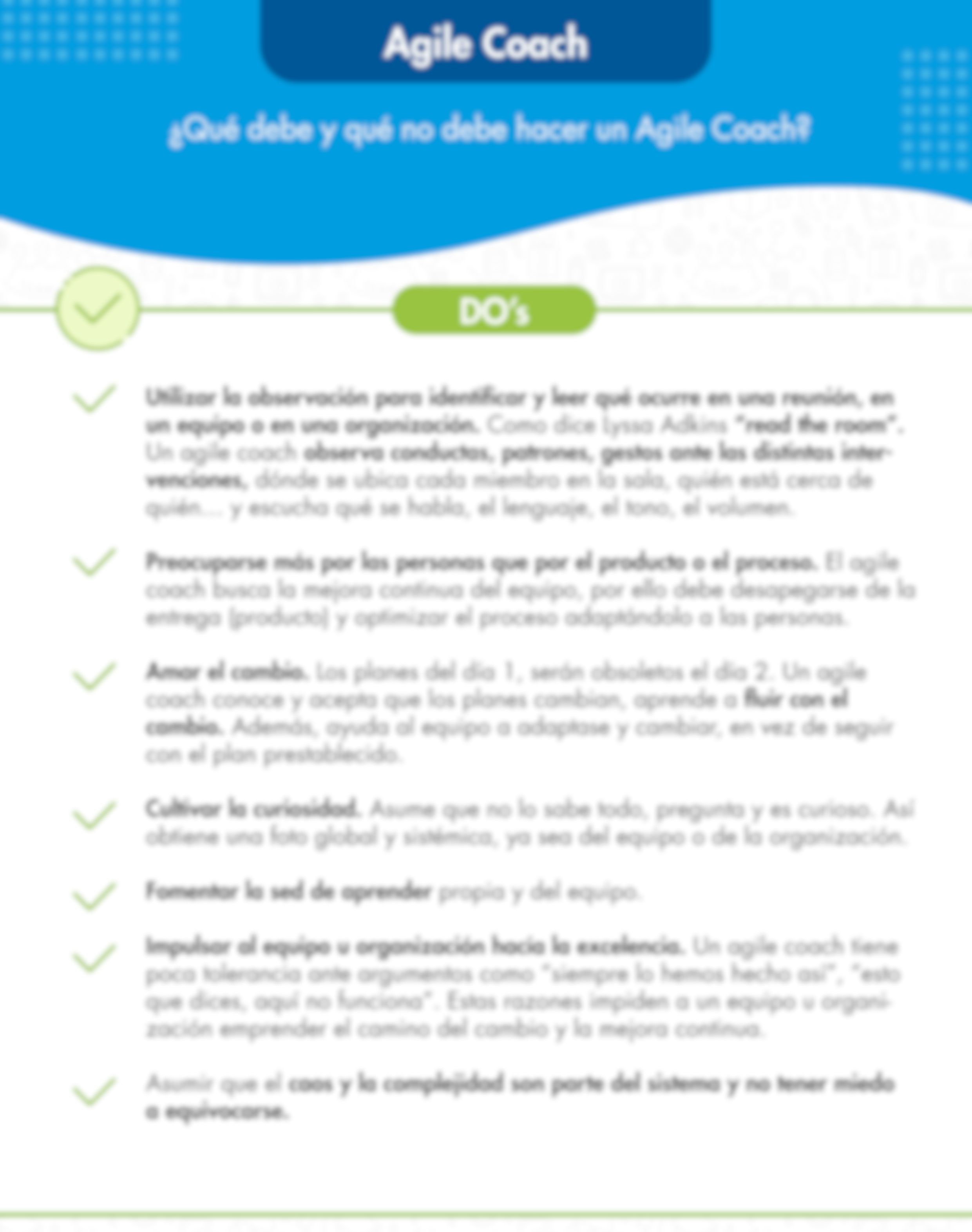 - Do’s & Don’ts. Tips para un Agile Coach primerizo