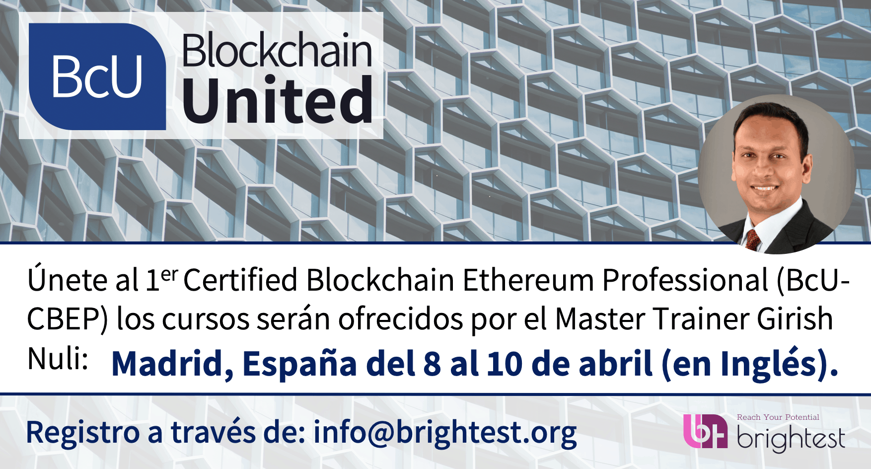 En Netmind abrimos de nuevo las puertas para la realización del curso Certified Blockchain Ethereum Professional (BcU-CBEP) del 8 al 10 de Abril, en nuestras instalaciones de Madrid de la mano de Brightest, organismo de certificación y de Verity Software, proveedor del curso.
