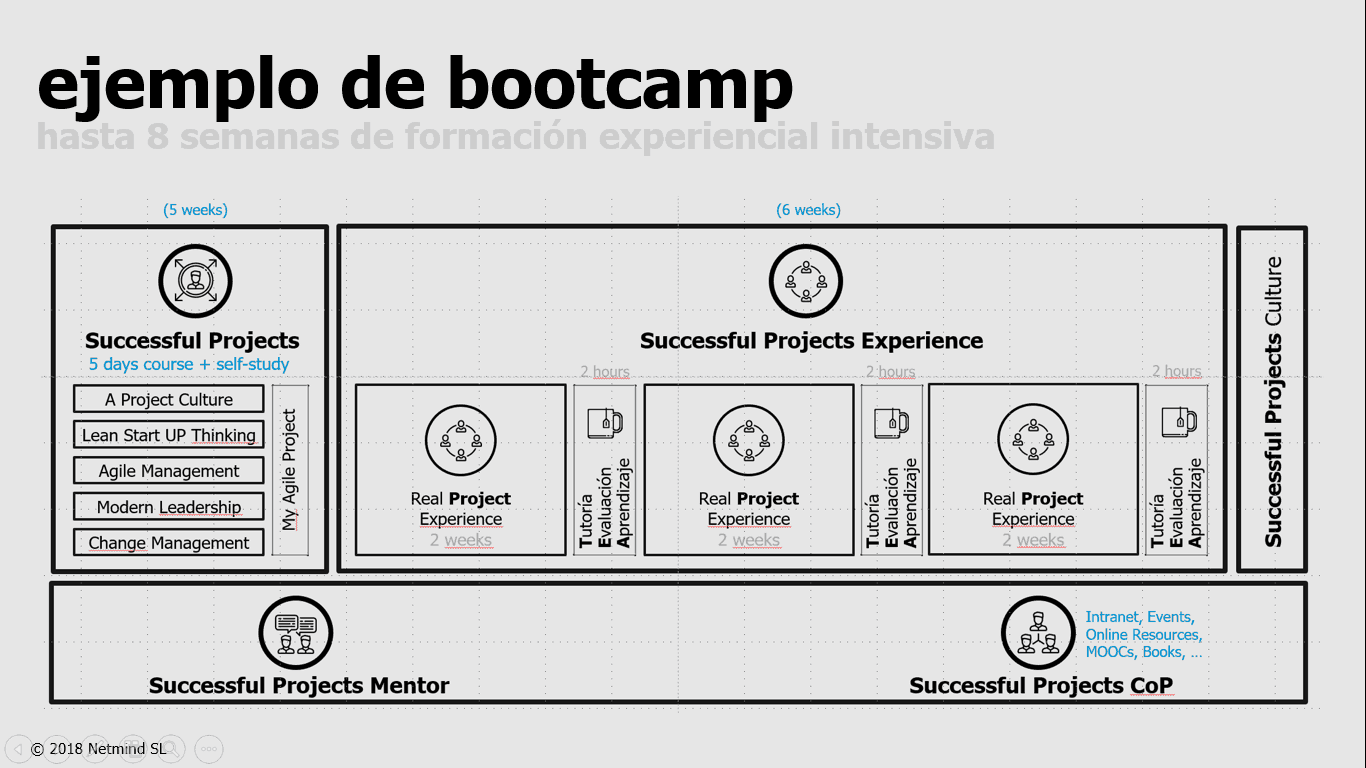 Para estas transformaciones debemos de contar con programas tipo Bootcamps que posibiliten la capacitación y la práctica real, con procesos de mentoring y acompañamiento, que permitan mediante espacio de aprendizaje colaborativo contar con una nueva cultura de desarrollo, de gestión de proyectos, etc.
