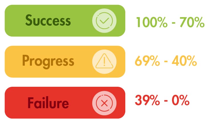 Un punto adicional a la tipología de cada OKR, es la calificación del mismo. Este cálculo es simplemente el promedio de las puntuaciones de sus Key Results. La calificación trae a colación una diferencia clave entre los Roofshots y Moonshots.
