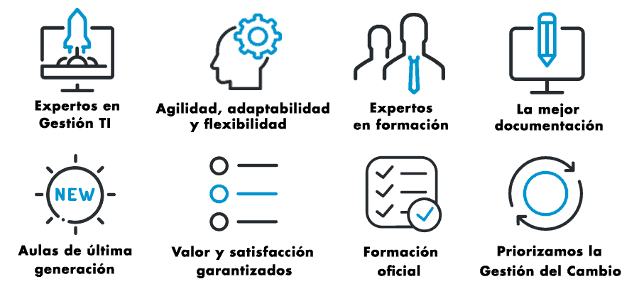 Uno de nuestros principales factores de éxito es, sin duda, nuestro equipo de formadores y mentores. Contamos con un equipo muy cualificado, entre los que se encuentran reconocidos expertos sobre las mejores practicas de Gestión, que combina la actividad formativa con actividades de consultoría y acompañamiento, o con el desarrollo de su actividad profesional, garantizando así su experiencia real en las materias que imparten. Además, todos nuestros expertos acreditan una larga trayectoria impartiendo formación y divulgando conocimiento. En este sentido, participan de forma regular en eventos y conferencias sobre buenas prácticas de Gestión TI, a nivel nacional e internacional.
