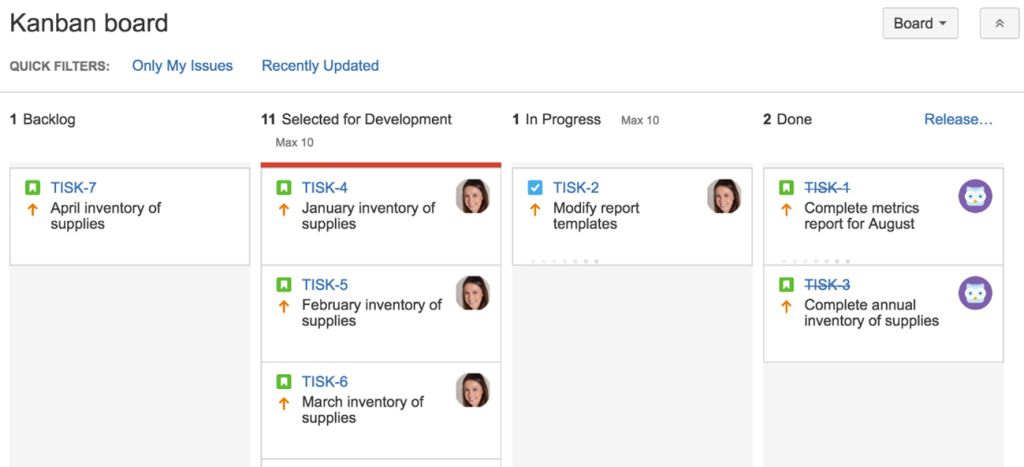 Cada una de las columnas representa un estado por el que van pasando las tareas en su flujo de trabajo, desde su comienzo hasta su terminación. Puede haber variaciones, puede haber más columnas, pero, en cualquier caso, nos debería ayudar para ver en qué punto se encuentra cada tarea en cada momento.