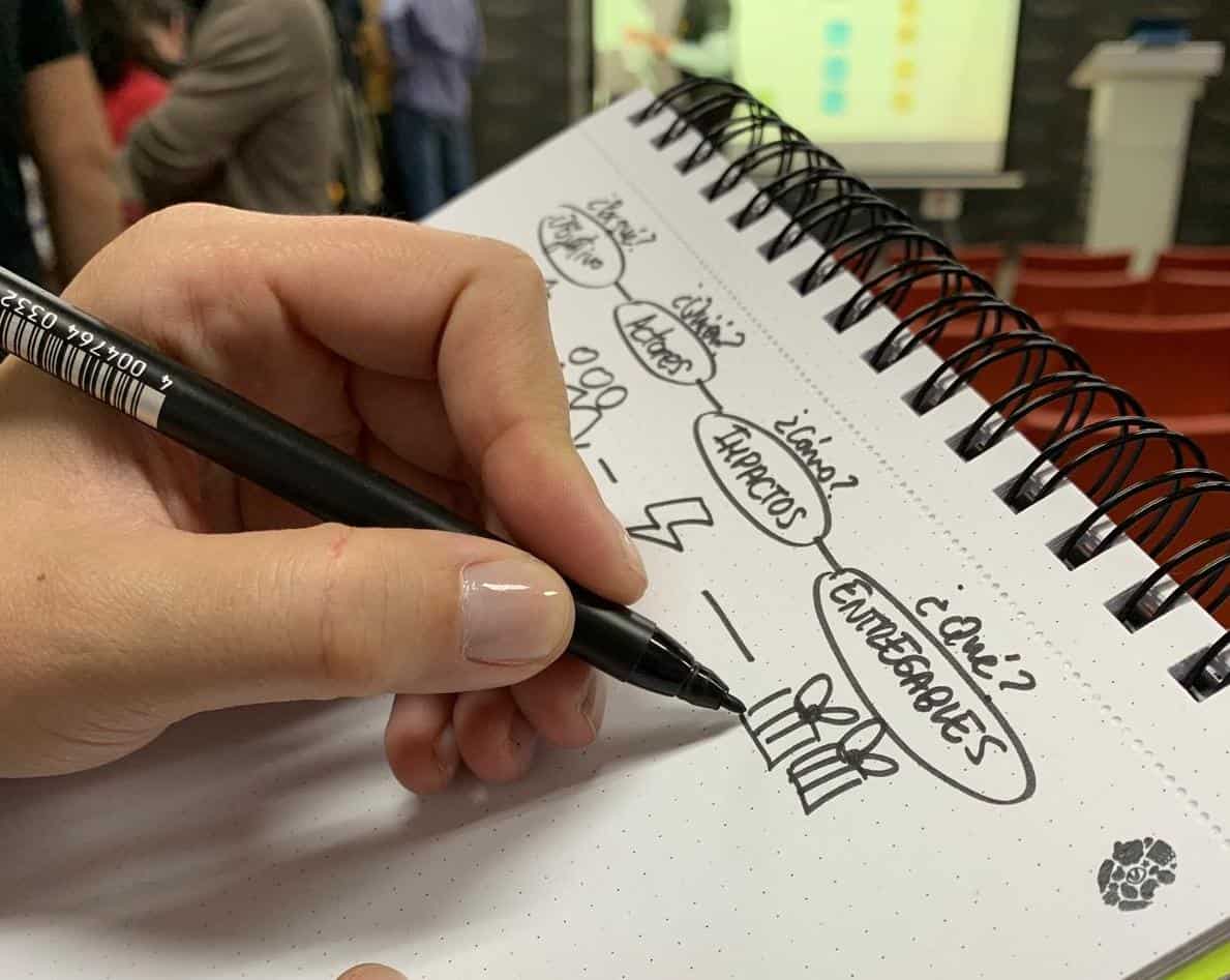Después de esta pausa disfrutamos del Taller de herramientas visuales para la definición de producto, facilitado por Aday Guerra y Javier Martin. Y nos convertimos por una hora en una start-up plasmando en un Impact Mapping todos sus objetivos , actores, impactos y entregables.