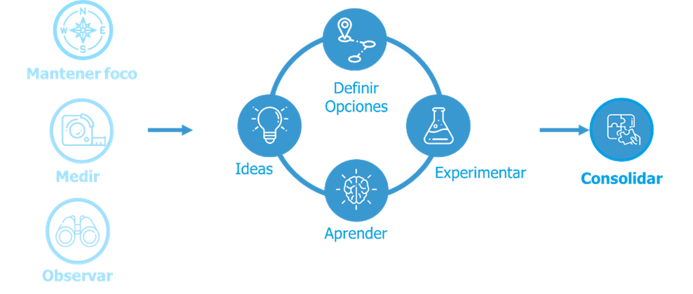 Sobre los comportamientos identificados y propuestos, experimentar, ponerlos en práctica y observar resultados. Observar cómo nos acercan o no a donde queremos estar, como de fáciles o difíciles son, si podemos aprender de ellos, mejorarlos o refinarlos. Compartir los aprendizajes y ayudar a propagarlos, ser consistente con ellos para consolidarlos.