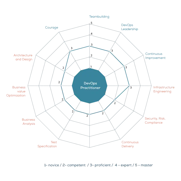 Después de que Deborah nos contara la situación actual del mercado DevOps, la misión y principios de DASA y el modelo de competencias me tocaba el turno a mí pero tuvimos la suerte de que Helder de Oliveira como Head of DevOps en Kairós Digital Solutions nos transmitiera su impresión desde el punto de vista de implementar DevOps en diferentes organizaciones y como el modelo propuesto por DASA les ha facilitado su labor, en especial la herramienta de Competence QuickScan™ consiguiendo que cada persona pueda analizar sus fortalezas y debilidades según los 4 áreas de Skills y las 8 áreas de Knowledge.