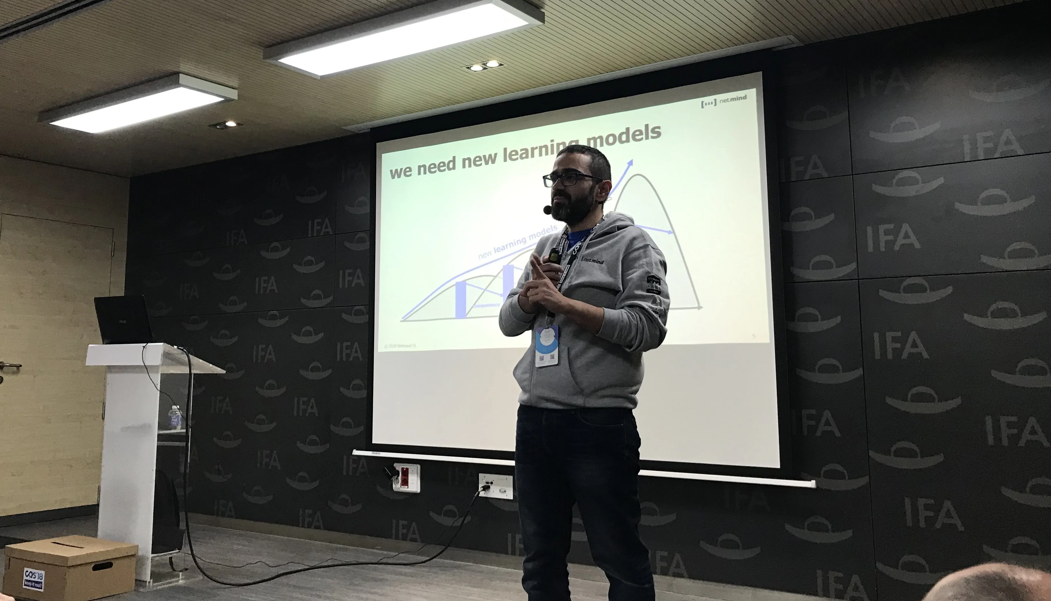 Café rápido con los compañeros, últimas sudaderas repartidas a colegas de otras compañías que querían sumarse a la oleada “Always Learning” y con muchas ganas de escuchar la siguiente Keynote. Gustavo Razzetti sube al escenario del auditorio y da comienzo su conferencia “The Democratization of Leadership”. En ella descubrimos como normalizar la palabra “Liderazgo”, tradicionalmente reservada a las altas esferas. Pero no solo eso, Gustazo Razzetti también nos enseña que cualquier empleado puede ser agente del cambio, liderar ese nuevo camino y conducir al éxito a la compañía.