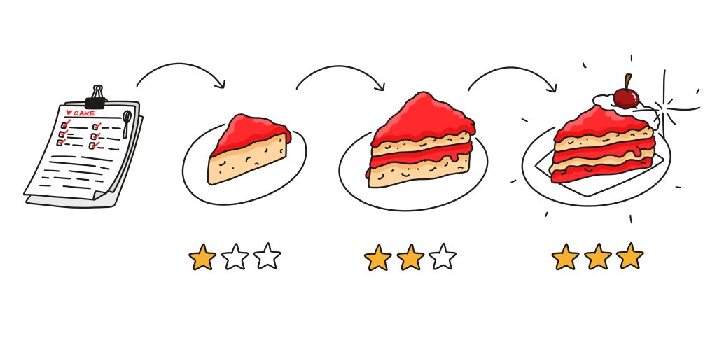She focused on that clear goal and iterated and iterated until she finally succeeded. She was not afraid of making mistakes. She knew that sometimes she would overdo it with the amount of sugar, sometimes she would underdo it with the flour and sometimes she would leave the cake in the oven too long, …. but she had to keep trying!